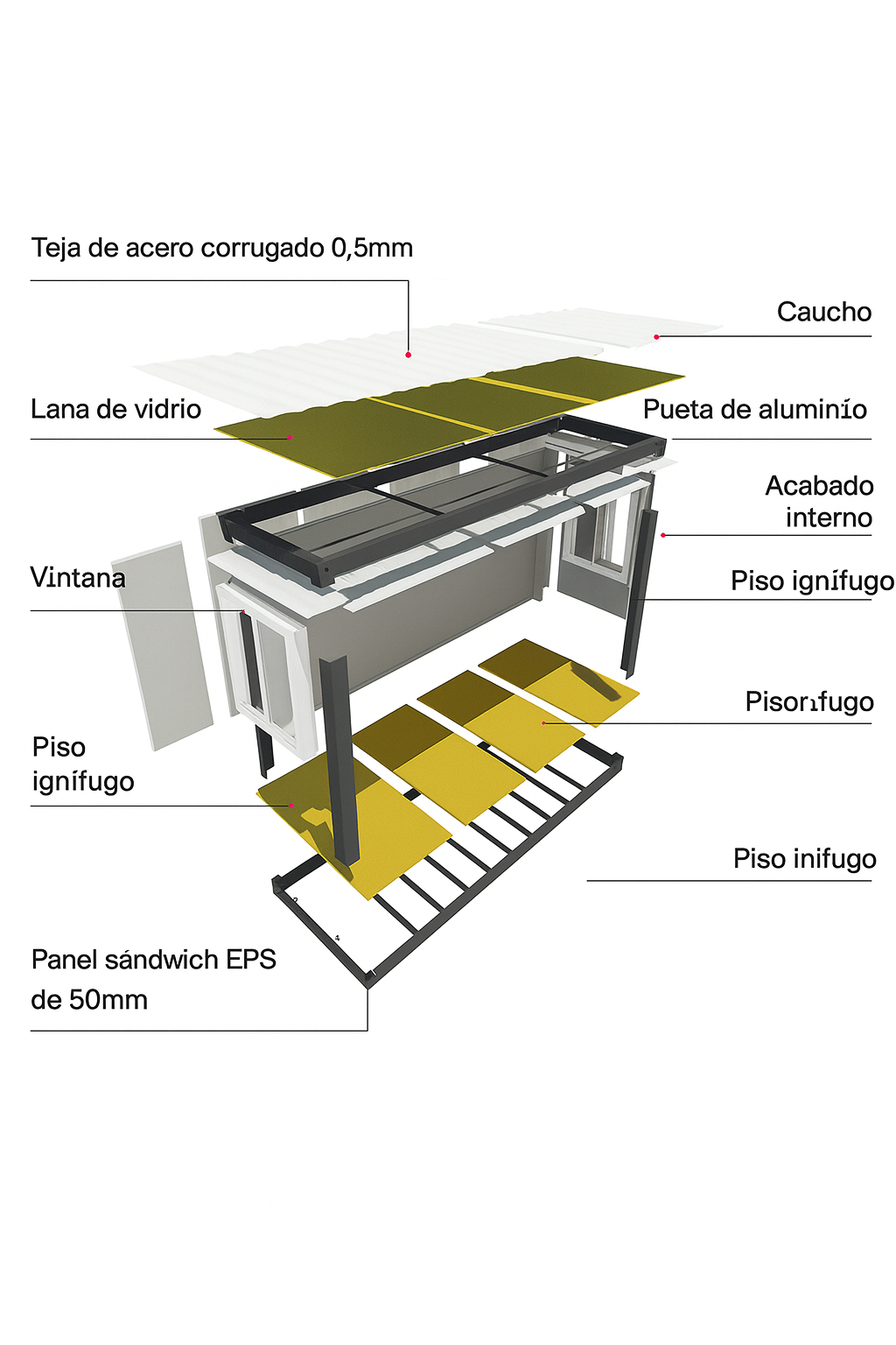 DIMENSIONES : 4,8 METROS ANCHO x 5,9 METROS LARGO ( 28,32 METROS CUADRADOS ) . 1 PUERTA PRINCIPAL CON 5 VENTANAS . 1 HABITACION . 1 BAÑO EQUIPADO ( PUEDE SER MODULAR Ó DE OBRA ) . 1 COCINA ALTA Y BAJA . IDEAL PARA 1-2 PERSONAS. POSIBILIDAD DE AÑADIR TERRAZA Y TEJADO . INSTALACION FOTOVOLTAICA DISPONIBLE.PRECIO NO INCLUYE IGIC NI MONTAJE