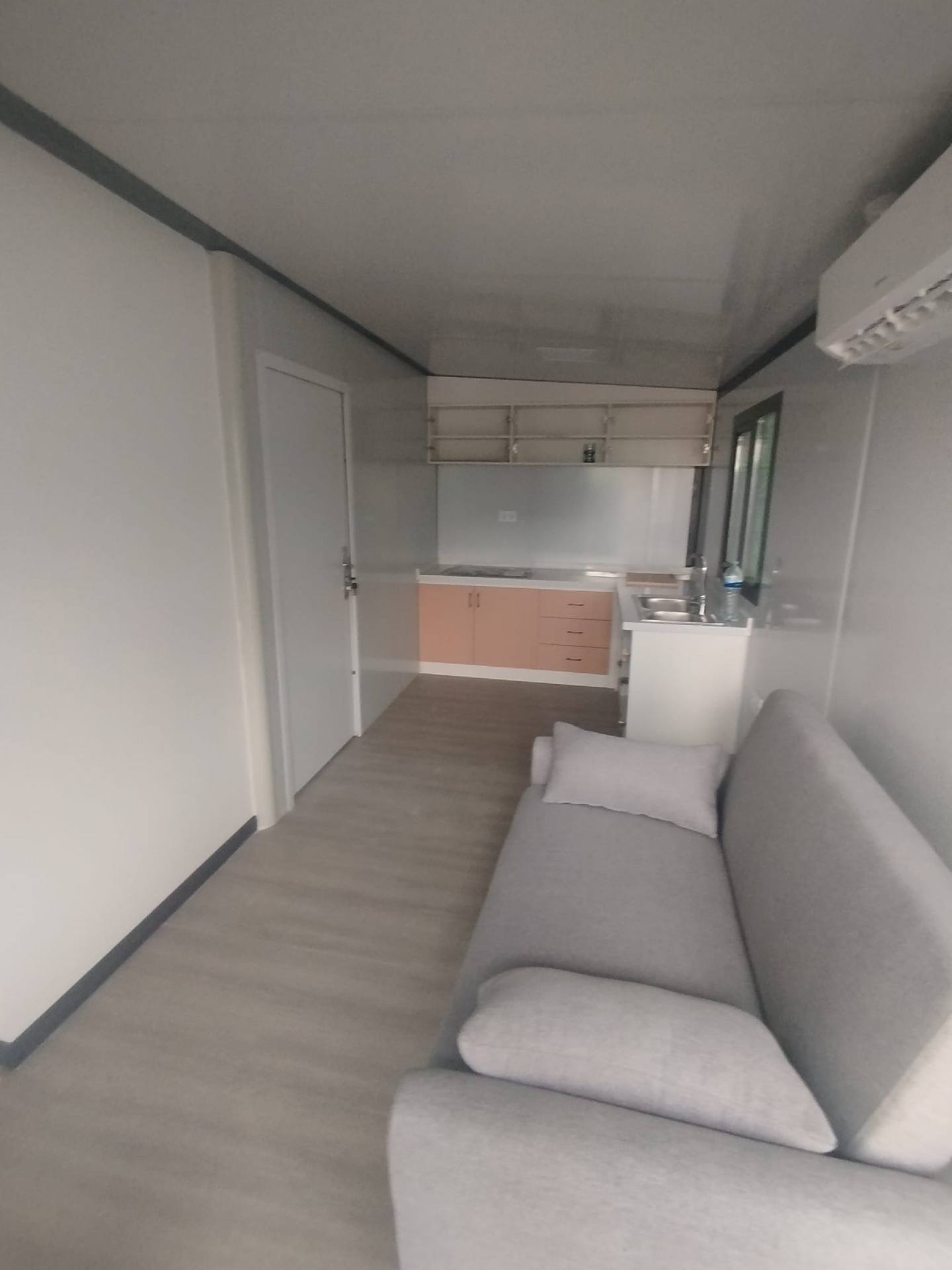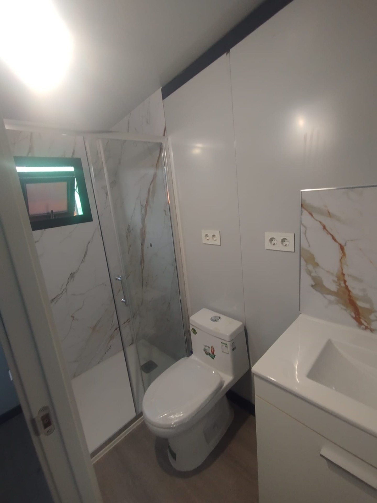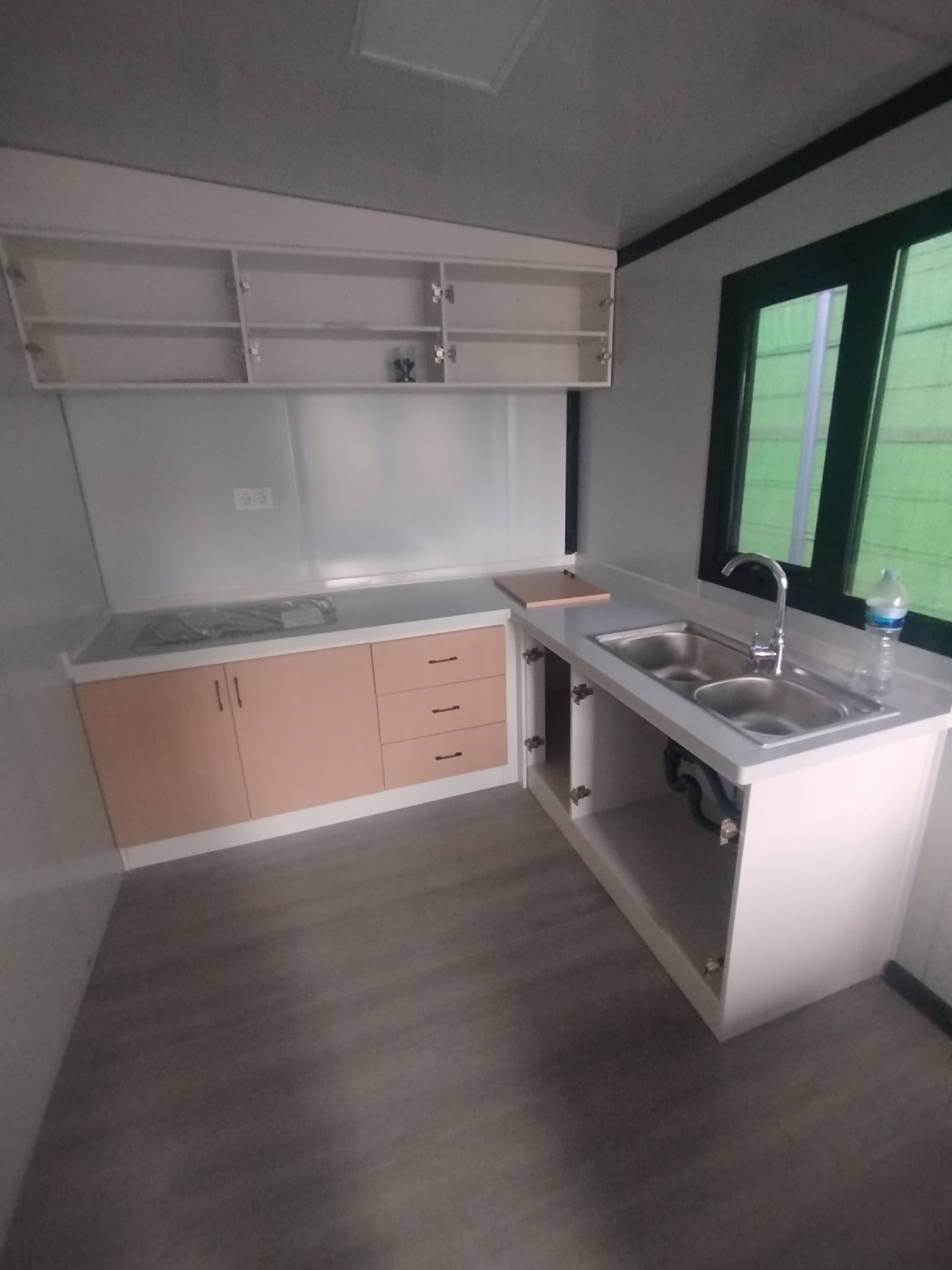 DIMENSIONS: 4.8 METERS WIDE x 5.9 METERS LONG (28.32 SQUARE METERS). 1 MAIN DOOR WITH 5 WINDOWS. 1 BEDROOM. 1 EQUIPPED BATHROOM (CAN BE MODULAR OR BUILT-IN). 1 KITCHEN WITH UPPER AND LOWER CABINETS. IDEAL FOR 1-2 PEOPLE. PRICE DOES NOT INCLUDE IGIC (Canary Islands General Indirect Tax) OR ASSEMBLY.